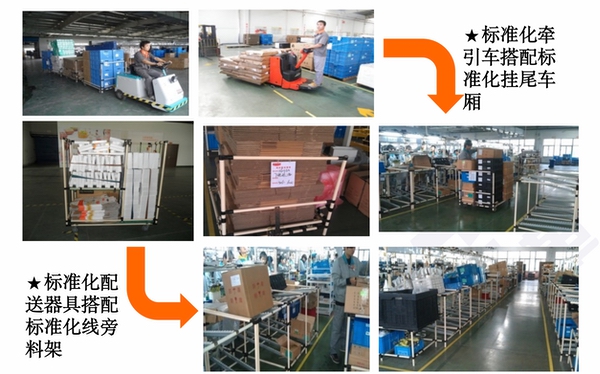 建立23人精益線:站立作業、工位料架、手傳式作業、局部皮帶傳送、螺絲刀等進行吊裝;