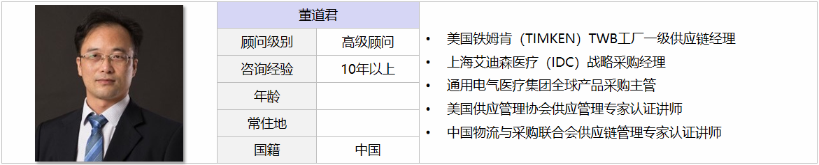 全球500強(qiáng)外企工作實(shí)戰(zhàn)經(jīng)驗(yàn),職業(yè)領(lǐng)域涉及的行業(yè)包括醫(yī)療設(shè)備、汽車零部件、工業(yè)電氣、機(jī)械制造、國(guó)際貿(mào)易等;對(duì)企業(yè)采購(gòu)與供應(yīng)鏈管理各個(gè)環(huán)節(jié)都非常熟悉,為企業(yè)診斷問(wèn)題并提出優(yōu)化方案,有效幫助企業(yè)實(shí)現(xiàn)降本增效;擁有10年的采購(gòu)與供應(yīng)鏈培訓(xùn)經(jīng)驗(yàn),培訓(xùn)場(chǎng)次超過(guò)300場(chǎng),參訓(xùn)學(xué)員超過(guò)10,000人。
