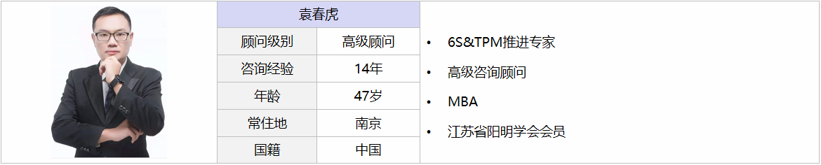 專注于精益生產領域的研究與運用。系統掌握精益生產理念和技術。擅長啟發性教育,嫻熟運用TOYOTA KATA進行精益人才育成;擅長6S、TPM、精益生產理論講授,現場輔導落實,以技術性改善為基礎實施全面改善;在咨詢實踐中注重結合陽明心學以及精神分析的理論,秉持人文關懷、重視員工個人發展。