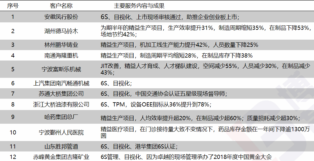 熟悉行業:鑄造、鋼鐵、新材料、汽車、石油、化工、交通、機械、醫療、制藥、紡織、路橋、礦業等企業的精益現場管理、6S管理、TPM設備管理等;