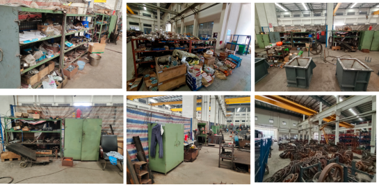 現場將一團亂麻:車間物品隨意擺放,廢品和良品堆積在一起。來料和在制品隨意擺放在現場,工人根本找不到物品。