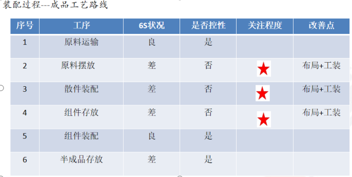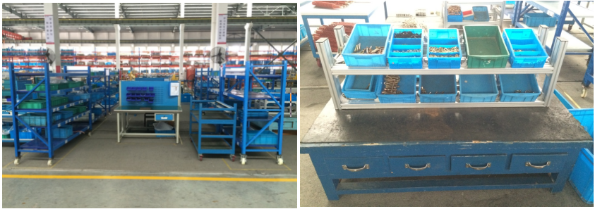 (2)裝配桌凌亂:一個裝配桌上放有多種組件的零部件,且沒有區域劃分零部