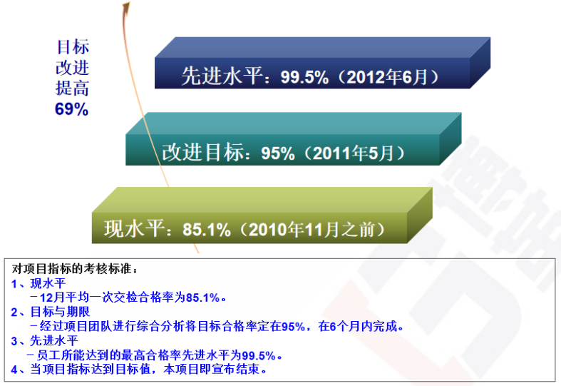 項目目的:通過六西格瑪項目,提高品牌效應降低生產成本,提高員工技能、質量意識,創品牌。