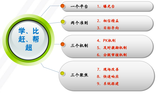 ①PK機制:把研討從會議室搬到現場,部門PK、項目組PK、員工PK。