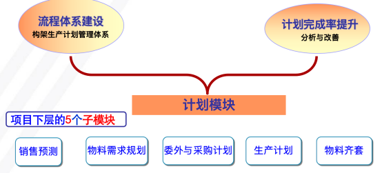 3)生產計劃和物流改進:通過“銷售預測”“物料需求規劃”“委外與采購計劃”“生產計劃”“物料齊套”等5個模塊,構建公司計劃管理流程體系,實現計劃完成率的提升。