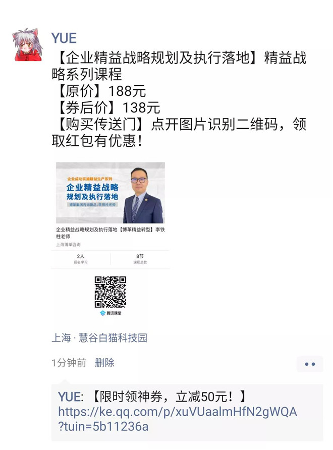 3. 課程海報加課程介紹推送到朋友圈(可附帶優惠券鏈接)