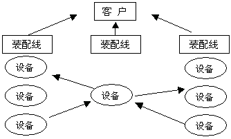 在下圖所示的拉動式生產(chǎn)裝配線中,涉及到注塑件、五金沖壓、線路板等各種零件,整個流程經(jīng)過多臺設(shè)備,而中間的設(shè)備是大部分零件都須經(jīng)過的中心環(huán)節(jié)。因此,這臺設(shè)備正是JIT生產(chǎn)制造系統(tǒng)所要控制的瓶頸設(shè)備。