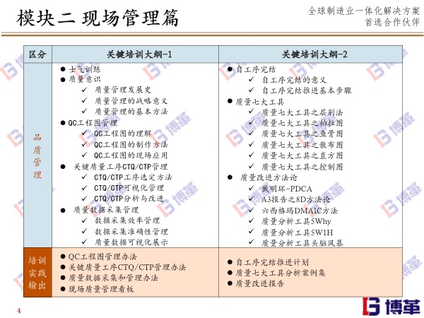 歡迎您訪問博革咨詢官網(wǎng)!博革咨詢是中國首家整合精益生產(chǎn)/六西格瑪/流程再造的咨詢公司,專注于提供 精益生產(chǎn)、6S現(xiàn)場管理、TPM設(shè)備管理、精益工廠布局、專業(yè)目視化、精益供應(yīng)鏈、精益研發(fā)、六西格瑪管理等綜合性問題解決方案并負(fù)責(zé)落地實(shí)施。