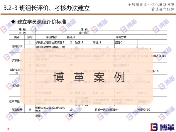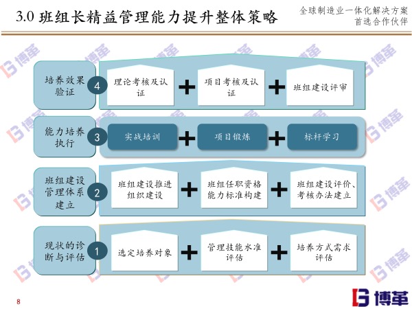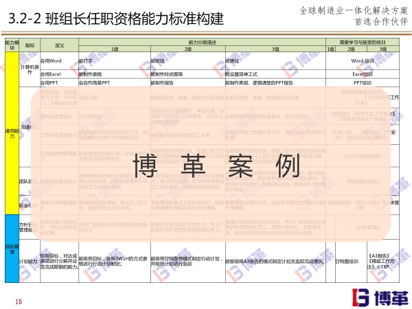 博革咨詢班組長能力培養系統 日期:2017-01-05 / 人氣: / 來源:m.huayanstone.cn / 熱門標簽: 歡迎您訪問博革咨詢官網!博革咨詢是中國首家整合精益生產/六西格瑪/流程再造的咨詢公司,專注于提供 精益生產、6S現場管理、TPM設備管理、精益工廠布局、專業目視化、精益供應鏈、精益研發、六西格瑪管理等綜合性問題解決方案并負責落地實施。 全國咨詢熱線:021-62373515、157-2153-3189 我們承諾:見效快、易復制,目標必對賭! 作者:博革咨詢 制造業班組長能力提升課程大綱← 企業管理中怎樣做好一個會溝通的班組長← 經典案例 Case 上海知名機械廠精益布局案例 汽配行業零部件QCC質量改善案例 家電企業精益布局案例 化工原料儲罐的低成本自動化案例 醫藥物流行業的三級成本核算改善案例 彩印包裝質量可視化管理系統案例 電氣行業精益管理推進案例 小家電行業的全供應鏈精益生產推進模式 相關內容 Related 2022年11月我們要在南京開公益課啦 企業必備的精益生產管理方法 南通某高端戶外安全用品生產企業精益管理咨詢項目正式啟動 無錫某裝備公司精益5S管理案例精華 青島某汽車零部件精益管理改善案例 企業為什么要重視防呆法?