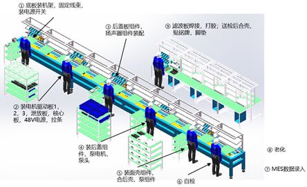 小型產品的工位設計與精益線、皮帶線、 倍速鏈等方式進行連接中型產品的工位設計與滾筒線鏈板線、托盤線等方式進行連接大型產品采用固定工位生產模式,主要體現在物料配送的流動和生產,人員的流動。